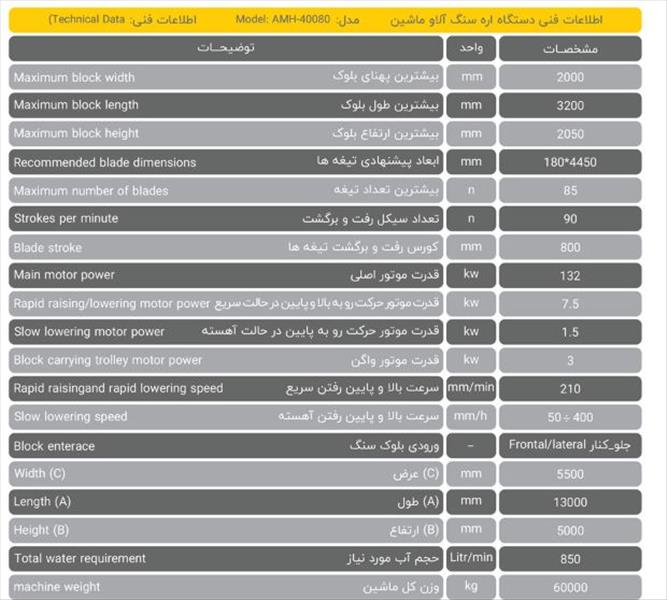 توضیحات: حرکت متناوب قفسه بر روی یاتاقان های هیدرواستاتیکی : حرکت یاتاقان بر روی بالشتکی از روغن عدم تماس فلز با فلز و سایش ناشی از آن کمترین افت توان مهار نیروهای ناشی از برش و ضخامت یکسان اسلب در دو طرف بلوک سنگ ایجاد کمترین لرزش در پایه ها و بالابر واگن سنگ سیستم برق و کنتـرل دستگاه مطابق با آخرین تکنـــولوژی روز و به منظــور ساده کردن کار با دستگاه ، به حداقل رساندن اشتباهات اپراتور و جلوگیری از وارد شدن خسارات احتمالی به دستگاه طراحی شده است. سیستم برق و کنترل دستگاه: صفحه نمایشگر به منظور نمایش کلیه خطاها و پارامترهای اندازه گیری شده توسط سنسورها راه اندازی موتور به صورت سافت استارتر به منظور جلوگیری از آسیب رسیدن به دینام اصلی در هنگام شروع به کار دستگاه جدا شدن تیغه ها از سنگ به هنگام خاموش شدن دستـگاه به منظـــور جلوگیـــری از آسیب رسیدن به تیغه ها قابلیت نمایش و تنظیم سرعت برش سنگ قابلیت نمایش متراژ برش سنگ سنسور حفاظت و انحراف سنگ سنسور نمایش سرعت فلایویل کنترل فشار حداقل و حداکثر سیستم